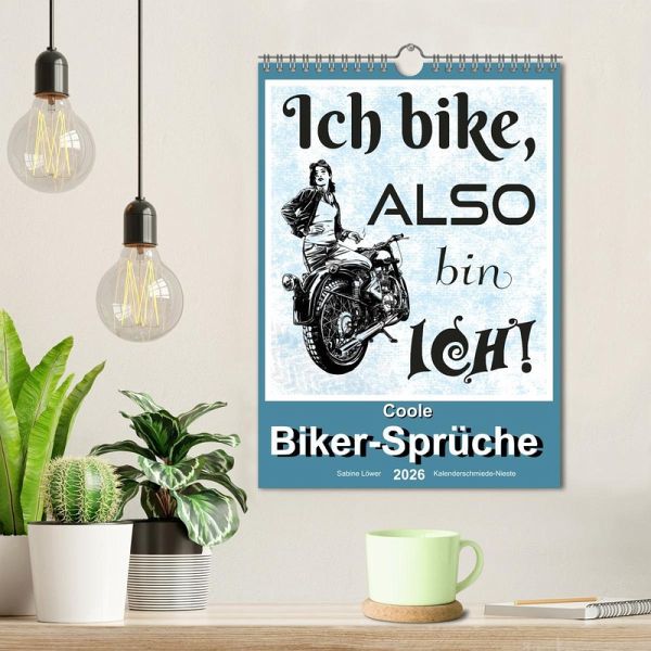 Coole und witzige Biker-Sprüche, gestaltet im Handlettering-Stil, bringen Sie Monat für Monat zum Schmunzeln. Eine tolle Geschenkidee für alle Motorradfahrerinnen und Motorradfahrer.