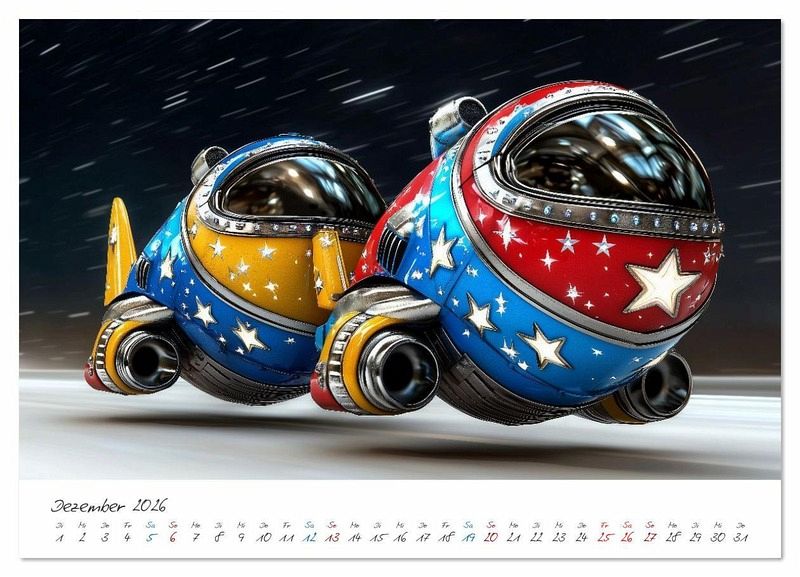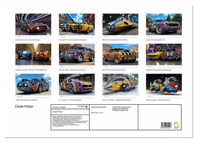 Mega cool. Mega smart. Mega Flitzer. Alle hier gezeigten Bilder wurden mit Sorgfalt, Liebe und mit Hilfe einer KI generiert. Abschließend werden sie mit Bildbearbeitungsprogrammen überarbeitet und in den Kalender eingefügt.
