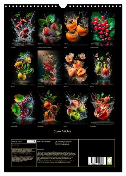 QUALITÄT - Hochwertiger Fotokalender mit 12 wunderschönen Motiven auf lichtbeständigem Bilderdruckpapier, robuste Spiralbindung mit Aufhängebügel.NACHHALTIG - deutliche Abfallreduzierung durch bedarfsgerechte Einzelstückfertigung, umweltfreundliches FSC-zertifiziertes Papier, Produktion in Deutschland, klimabewusste Logistik.PERFEKTES GESCHENK - Kalender für Freunde und Familie, für Kinder und Erwachsene, jung und alt, zu Weihnachten, Geburtstag oder zwischendurch.VIELFALT - Bildkalender in verschiedenen Formaten, z.B. DIN A5, DIN A4, DIN A3 sowie DIN A2. Ob Naturmotiv, Gemälde oder Fotos, ideal für ein persönliches Wohlfühlambiente.Frische Früchte, atemberaubend schön und richtig lecker. von Autor(in): Peter Roder