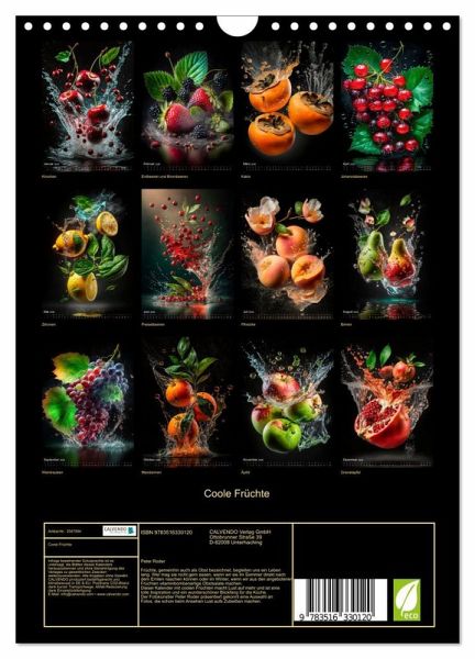 QUALITÄT - Hochwertiger Fotokalender mit 12 wunderschönen Motiven auf lichtbeständigem Bilderdruckpapier, robuste Spiralbindung mit Aufhängebügel.NACHHALTIG - deutliche Abfallreduzierung durch bedarfsgerechte Einzelstückfertigung, umweltfreundliches FSC-zertifiziertes Papier, Produktion in Deutschland, klimabewusste Logistik.PERFEKTES GESCHENK - Kalender für Freunde und Familie, für Kinder und Erwachsene, jung und alt, zu Weihnachten, Geburtstag oder zwischendurch.VIELFALT - Bildkalender in verschiedenen Formaten, z.B. DIN A5, DIN A4, DIN A3 sowie DIN A2. Ob Naturmotiv, Gemälde oder Fotos, ideal für ein persönliches Wohlfühlambiente.Frische Früchte, atemberaubend schön und richtig lecker. von Autor(in): Peter Roder