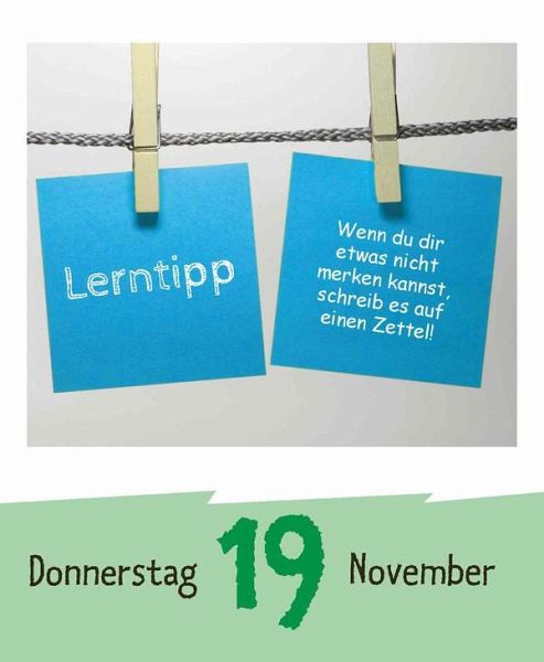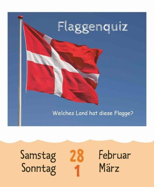 Je Wochentag ein Kalenderblatt, Samstag/Sonntag auf einem Blatt.