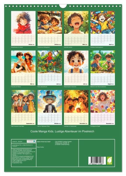 Die bunte Welt der Mangas! Dieser Kalender präsentiert lustige und liebenswerte Charaktere, die in einem Abenteuerland voller Fantasie und Freude leben. Jeden Monat begleiten dich diese niedlichen und coolen Manga Kinder durch ihre aufregenden Erlebnisse. Lass dich von ihrer Magie verzaubern!