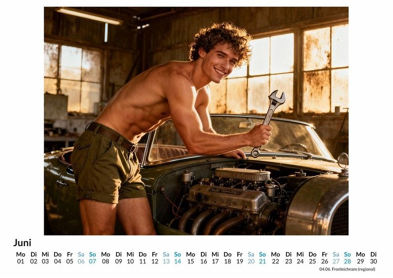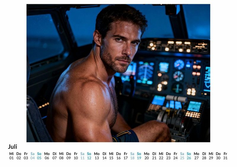 Über den Wolken, wo das Abenteuer wartet, präsentieren sich die Protagonisten des Kalenders "Coole Piloten". Jeder Monat enthüllt eine neue Facette von Selbstbewusstsein und Lässigkeit. Mit verspiegelter Sonnenbrille und einem souveränen Lächeln verkörpern diese Männer den Mythos des Fliegers auf eine ganz eigene Art und Weise. Dieser Kalender ist eine ausgezeichnete Wahl für: * Fans der Luftfahrt und des klassischen Pilotenlooks. * Menschen, die eine unkonventionelle und selbstbewusste Ästhetik schätzen. * Alle, die nach einem besonderen Wandschmuck für das kommende Jahr suchen. Monat für Monat zeigt der Kalender eine neue Aufnahme. Die Motive konzentrieren sich auf den charakteristischen Look: die offene Pilotenjacke, die den Blick auf den Oberkörper freigibt, kombiniert mit der ikonischen Fliegersonnenbrille. Die Posen sind selbstsicher, das Grinsen ist charmant. Diese Bilder entstanden durch den Einsatz moderner computergestützter Verfahren und stellen eine fantasievolle Interpretation des Pilotenthemas dar. Jedes Bild fängt eine Stimmung zwischen Rebellion und Disziplin ein. Beim Kauf dieses Kalenders kann man Folgendes erwarten: * Zwölf Monatsblätter mit einzigartigen Motiven. * Ein praktisches Kalendarium für die Jahresplanung. * Ein Wandkalender, der das ganze Jahr über ein Blickfang ist. Der Kalender "Coole Piloten" ist mehr als nur ein Zeitmesser. Er ist eine Hommage an den Geist der Fliegerei, interpretiert mit einem modernen und freizügigen Ansatz. Eine Reise durch zwölf Monate voller Charisma und souveräner Ausstrahlung. Es lohnt sich, einen Blick auf die einzelnen Monatsmotive zu werfen und sich selbst ein Bild zu machen.