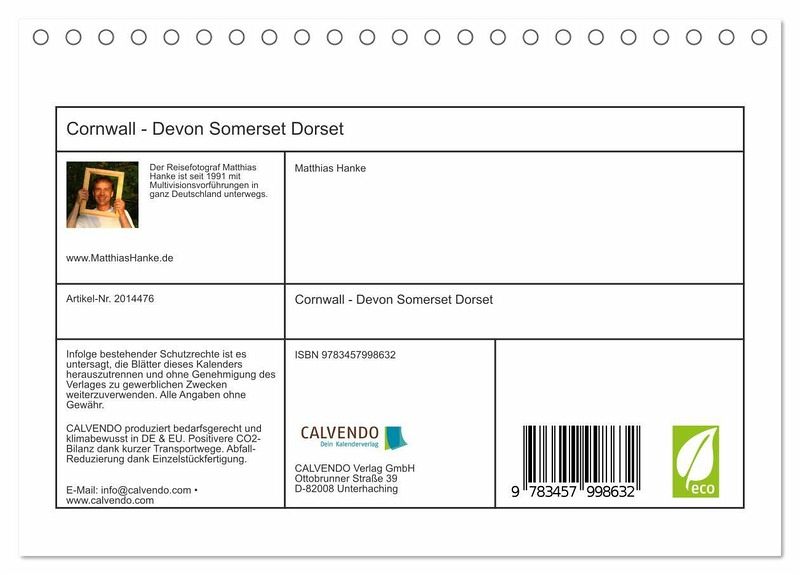 QUALITÄT - Hochwertiger Fotokalender mit 12 wunderschönen Motiven auf lichtbeständigem Bilderdruckpapier, robuste Spiralbindung.NACHHALTIG - deutliche Abfallreduzierung durch bedarfsgerechte Einzelstückfertigung, umweltfreundliches FSC-zertifiziertes Papier, Produktion in Deutschland, klimabewusste Logistik.PERFEKTES GESCHENK - Kalender für Freunde und Familie, für Kinder und Erwachsene, jung und alt, zu Weihnachten, Geburtstag oder zwischendurch.VIELFALT - Bildkalender in verschiedenen Formaten, z.B. DIN A5, DIN A4, DIN A3 sowie DIN A2. Ob Naturmotiv, Gemälde oder Fotos, ideal für ein persönliches Wohlfühlambiente.Cornwall und die angrenzenden Grafschaften zählen zweifellos zu den schönsten Regionen Europas von Autor(in): Matthias Hanke