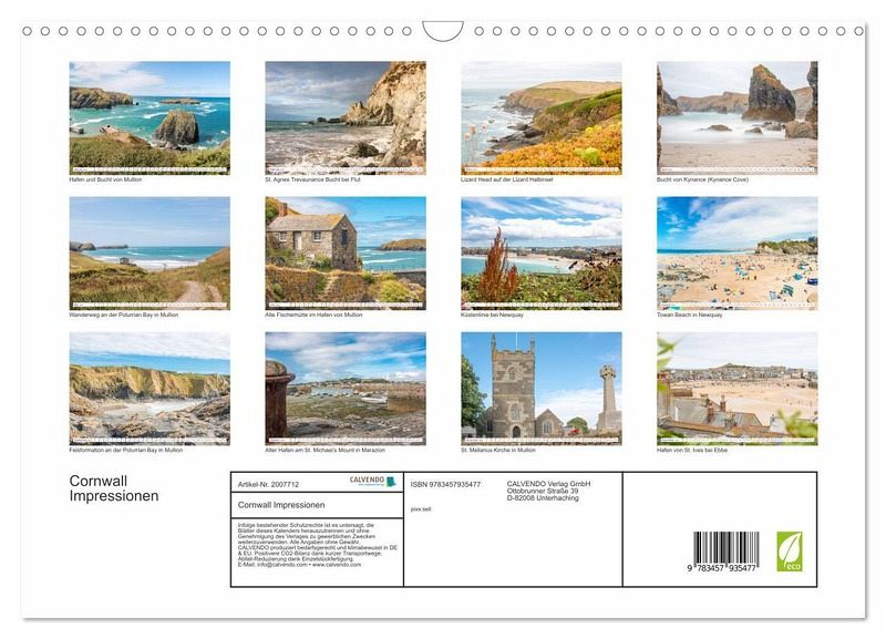 QUALITÄT - Hochwertiger Fotokalender mit 12 wunderschönen Motiven auf lichtbeständigem Bilderdruckpapier, robuste Spiralbindung mit Aufhängebügel.NACHHALTIG - deutliche Abfallreduzierung durch bedarfsgerechte Einzelstückfertigung, umweltfreundliches FSC-zertifiziertes Papier, Produktion in Deutschland, klimabewusste Logistik.PERFEKTES GESCHENK - Kalender für Freunde und Familie, für Kinder und Erwachsene, jung und alt, zu Weihnachten, Geburtstag oder zwischendurch.VIELFALT - Bildkalender in verschiedenen Formaten, z.B. DIN A5, DIN A4, DIN A3 sowie DIN A2. Ob Naturmotiv, Gemälde oder Fotos, ideal für ein persönliches Wohlfühlambiente.Cornwall Naturlandschaften und Städte von Autor(in): Fabian Junge