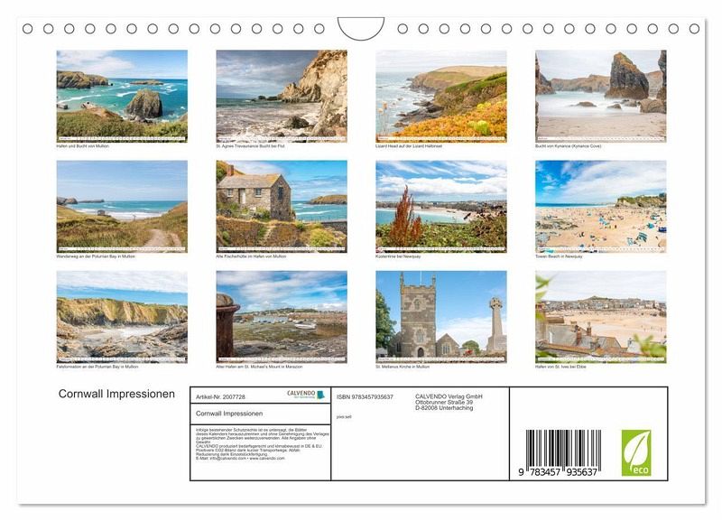 QUALITÄT - Hochwertiger Fotokalender mit 12 wunderschönen Motiven auf lichtbeständigem Bilderdruckpapier, robuste Spiralbindung mit Aufhängebügel.NACHHALTIG - deutliche Abfallreduzierung durch bedarfsgerechte Einzelstückfertigung, umweltfreundliches FSC-zertifiziertes Papier, Produktion in Deutschland, klimabewusste Logistik.PERFEKTES GESCHENK - Kalender für Freunde und Familie, für Kinder und Erwachsene, jung und alt, zu Weihnachten, Geburtstag oder zwischendurch.VIELFALT - Bildkalender in verschiedenen Formaten, z.B. DIN A5, DIN A4, DIN A3 sowie DIN A2. Ob Naturmotiv, Gemälde oder Fotos, ideal für ein persönliches Wohlfühlambiente.Cornwall Naturlandschaften und Städte von Autor(in): Fabian Junge