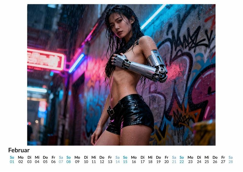 Jenseits der Grenzen bekannter Welten entfaltet sich ein Reich der Fantasie, in dem kühne Kriegerinnen und zauberhafte Wesen zum Leben erwachen. Der Kalender "Cosplay" fängt diese Momente ein und präsentiert zwölf einzigartige Charakterdarstellungen, die das Herz von Rollenspiel und Fantasie weiterschlagen lassen. Dieser Kalender ist eine passende Wahl für: Liebhaber von Fantasywelten und Rollenspielen. Sammler von Kalendern mit einem Fokus auf Charakterdesign. Menschen, die eine freizügige und fantasievolle Ästhetik schätzen. Jedes der zwölf Monatsblätter zeigt eine andere Figur in einer Umgebung, die ihrer Herkunft entspricht. Von düsteren Wäldern bis zu sonnendurchfluteten Tempelruinen, die Szenerien unterstreichen den Charakter der dargestellten Figuren. Die Kostüme sind detailreich und knapp gehalten, eine moderne Interpretation klassischer Fantasy Archetypen. Diese Bildwelten wurden vollständig durch die kreative Leistung von Rechenalgorithmen erschaffen und bieten eine neue Perspektive auf das Cosplay Thema. Der Kauf dieses Kalenders beinhaltet: Zwölf sorgfältig ausgewählte Charakterdarstellungen. Ein praktisches Kalendarium für die Monatsübersicht. Eine visuelle Reise durch fantasievolle Welten. Der "Cosplay" Kalender ist eine Hommage an die Kraft der Fantasie und die Darstellung starker Charaktere. Er verbindet die Ästhetik von Rollenspielen mit einer modernen, freizügigen Interpretation. Ein Blick auf die Monatsübersicht offenbart die Vielfalt der kommenden zwölf Monate.