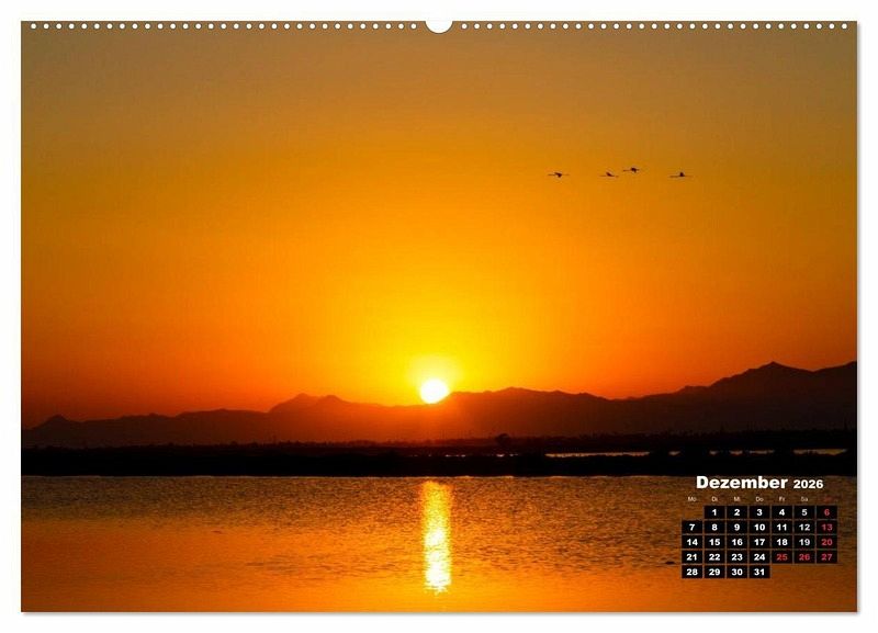 Dezember: Flamingos im Sonnenuntergang