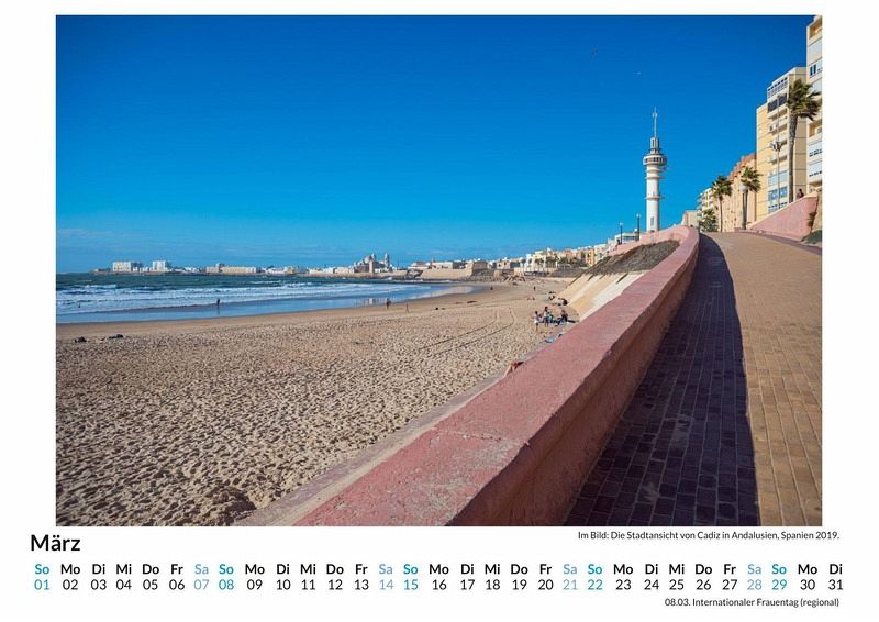 Entdecken Sie die atemberaubende Schönheit der Costa de la Luz mit unserem exklusiven Wandkalender! Lassen Sie sich Monat für Monat von 12 sorgfältig ausgewählten Motiven dieser traumhaften spanischen Küste verzaubern. Jedes Bild fängt die Magie der goldenen Strände, des türkisblauen Meeres und der malerischen Landschaften ein. Gedruckt auf hochwertigem, lichtbeständigem Bilderdruckpapier, bleibt die Brillanz der Farben das ganze Jahr über erhalten. Nachhaltig in Deutschland auf FSC-zertifiziertem Papier produziert, ist dieser Kalender nicht nur ein optisches Highlight, sondern auch umweltfreundlich. Holen Sie sich ein Stück Urlaubsfeeling nach Hause - ideal auch als Geschenk! Hochwertig Erleben Sie ein Jahr voller Eleganz mit unserem Premium-Fotokalender. Jedes der 12 Motive ist auf hochwertigem, lichtbeständigem Bilderdruckpapier gedruckt, um die Lebendigkeit jedes Bildes zu bewahren. Die robuste Spiralbindung gewährleistet Langlebigkeit und einfache Handhabung. Nachhaltig Unser Engagement für die Umwelt spiegelt sich in jedem Exemplar wider. Durch die Produktion auf Abruf reduzieren wir signifikant unseren Abfall. Wir verwenden ausschließlich umweltfreundliches, FSC-zertifiziertes Papier. Stolz gefertigt in Deutschland, achten wir bei unserer Logistik auf Klimaschutz, um unseren ökologischen Fußabdruck zu minimieren. Das ideale Geschenk Dieser Kalender ist das perfekte Präsent für jeden Anlass - ob Weihnachten, Geburtstage oder einfach als liebevolle Aufmerksamkeit zwischendurch. Geeignet für Freunde, Familie, Kinder und Erwachsene gleichermaßen, bereichert er jedes Zuhause mit seiner Vielfalt und Schönheit, unabhängig vom Alter der Beschenkten.