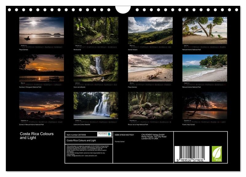QUALITY - High-quality photo calendar with 12 beautiful images on light-resistant paper, robust spiral binding with hanger.SUSTAINABLE - Significant waste reduction due to print-on-demand production, environmentally friendly FSC-certified paper, produced in the UK, climate-conscious logistical processes.PERFECT GIFT - calendars for friends and family, for children, all ages and all occasions, from Christmas to birthdays and everything in between.LOTS OF CHOICE - Wall calendars in different sizes (DIN A4 and DIN A3), for any topic and personal taste, featuring photography, painting and illustrations.Beuatiful pictures of Costa Rica's impressive landscapes, author: Thomas Gerber