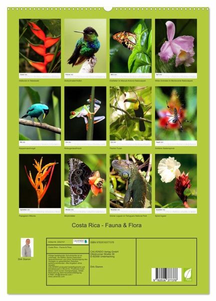 Die Regenwälder Costa Ricas zählen zu den artenreichsten und schönsten der Erde. Kommen Sie mit auf einen Streifzug durch den Urwald und begegnen Sie einer außergewöhnlichen und farbenprächtigen Flora und Fauna. Der Fotograf Dirk Stamm hält für Sie zwölf individuelle und wunderschöne Aufnahmen in diesem hochwertigen Fotokalender fest.