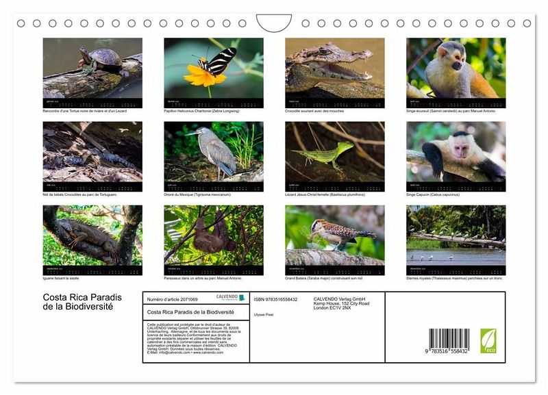 Le Costa Rica est réputé pour sa politique visant à préserver sa faune et sa flore. Avec ce calendrier soyez le témoin de l'étonnante biodiversité du Costa Rica à travers une sélection de photos de crocodiles, tortues, paresseux, iguanes et autres animaux sauvages d'Amérique centrale.