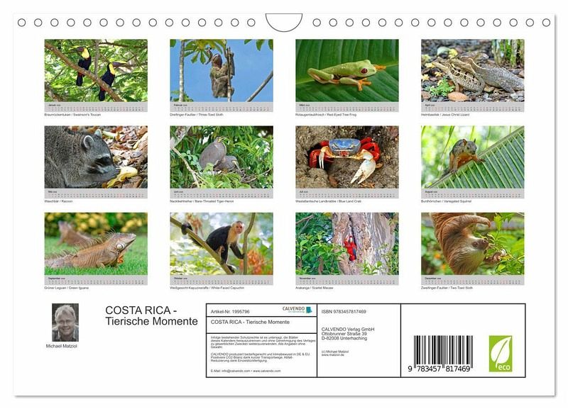 QUALITÄT - Hochwertiger Fotokalender mit 12 wunderschönen Motiven auf lichtbeständigem Bilderdruckpapier, robuste Spiralbindung mit Aufhängebügel.NACHHALTIG - deutliche Abfallreduzierung durch bedarfsgerechte Einzelstückfertigung, umweltfreundliches FSC-zertifiziertes Papier, Produktion in Deutschland, klimabewusste Logistik.PERFEKTES GESCHENK - Kalender für Freunde und Familie, für Kinder und Erwachsene, jung und alt, zu Weihnachten, Geburtstag oder zwischendurch.VIELFALT - Bildkalender in verschiedenen Formaten, z.B. DIN A5, DIN A4, DIN A3 sowie DIN A2. Ob Naturmotiv, Gemälde oder Fotos, ideal für ein persönliches Wohlfühlambiente.Kleiner Einblick in die Tierwelt Costa Ricas von Autor(in): Michael Matziol