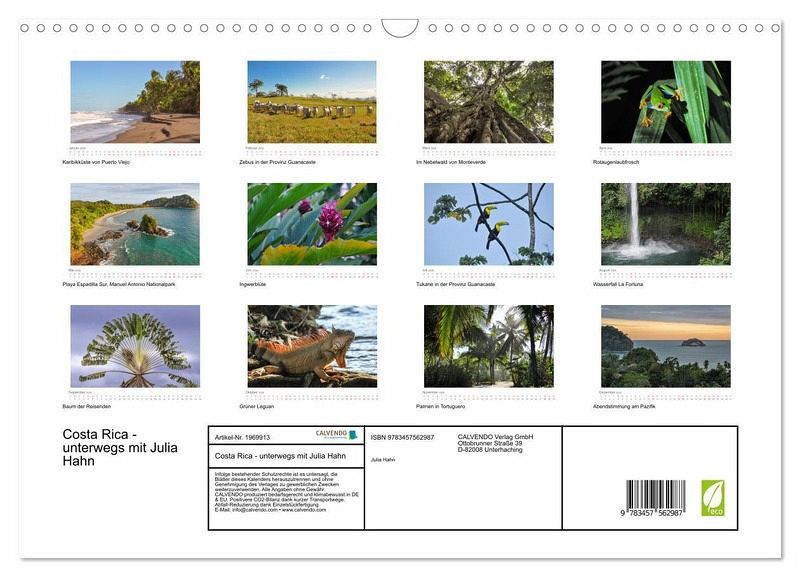 QUALITÄT - Hochwertiger Fotokalender mit 12 wunderschönen Motiven auf lichtbeständigem Bilderdruckpapier, robuste Spiralbindung mit Aufhängebügel.NACHHALTIG - deutliche Abfallreduzierung durch bedarfsgerechte Einzelstückfertigung, umweltfreundliches FSC-zertifiziertes Papier, Produktion in Deutschland, klimabewusste Logistik.PERFEKTES GESCHENK - Kalender für Freunde und Familie, für Kinder und Erwachsene, jung und alt, zu Weihnachten, Geburtstag oder zwischendurch.VIELFALT - Bildkalender in verschiedenen Formaten, z.B. DIN A5, DIN A4, DIN A3 sowie DIN A2. Ob Naturmotiv, Gemälde oder Fotos, ideal für ein persönliches Wohlfühlambiente.Costa Rica zeichnet sich durch seine artenreiche Tier- und Pflanzenwelt sowie seine abwechslungsreiche Landschaft aus. von Autor(in): Julia Hahn
