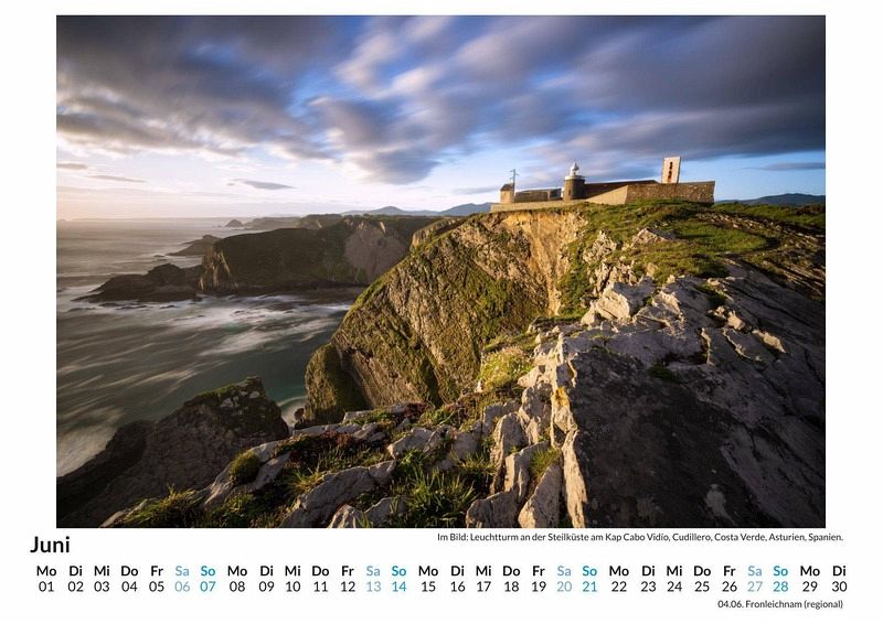Entdecken Sie die atemberaubende Schönheit der Costa Verde mit unserem exklusiven Wandkalender! Lassen Sie sich Monat für Monat von 12 sorgfältig ausgewählten Motiven dieser grünen Küstenregion Spaniens verzaubern. Ob majestätische Klippen, idyllische Strände oder üppige Landschaften - dieser Kalender bringt die Naturwunder der Costa Verde direkt in Ihr Zuhause. Gedruckt auf hochwertigem, lichtbeständigem Bilderdruckpapier und in Deutschland auf FSC-zertifiziertem Papier produziert, vereint er Nachhaltigkeit und Qualität. Perfekt als Geschenk oder für die eigene Wand - holen Sie sich ein Stück spanische Küstenromantik in Ihr Leben! Hochwertig Erleben Sie ein Jahr voller Eleganz mit unserem Premium-Fotokalender. Jedes der 12 Motive ist auf hochwertigem, lichtbeständigem Bilderdruckpapier gedruckt, um die Lebendigkeit jedes Bildes zu bewahren. Die robuste Spiralbindung gewährleistet Langlebigkeit und einfache Handhabung. Nachhaltig Unser Engagement für die Umwelt spiegelt sich in jedem Exemplar wider. Durch die Produktion auf Abruf reduzieren wir signifikant unseren Abfall. Wir verwenden ausschließlich umweltfreundliches, FSC-zertifiziertes Papier. Stolz gefertigt in Deutschland, achten wir bei unserer Logistik auf Klimaschutz, um unseren ökologischen Fußabdruck zu minimieren. Das ideale Geschenk Dieser Kalender ist das perfekte Präsent für jeden Anlass - ob Weihnachten, Geburtstage oder einfach als liebevolle Aufmerksamkeit zwischendurch. Geeignet für Freunde, Familie, Kinder und Erwachsene gleichermaßen, bereichert er jedes Zuhause mit seiner Vielfalt und Schönheit, unabhängig vom Alter der Beschenkten.