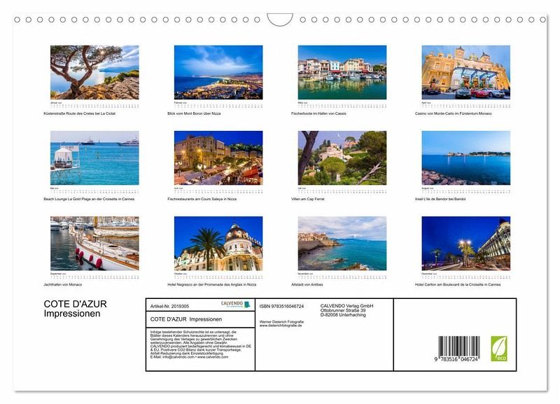 QUALITÄT - Hochwertiger Fotokalender mit 12 wunderschönen Motiven auf lichtbeständigem Bilderdruckpapier, robuste Spiralbindung mit Aufhängebügel.NACHHALTIG - deutliche Abfallreduzierung durch bedarfsgerechte Einzelstückfertigung, umweltfreundliches FSC-zertifiziertes Papier, Produktion in Deutschland, klimabewusste Logistik.PERFEKTES GESCHENK - Kalender für Freunde und Familie, für Kinder und Erwachsene, jung und alt, zu Weihnachten, Geburtstag oder zwischendurch.VIELFALT - Bildkalender in verschiedenen Formaten, z.B. DIN A5, DIN A4, DIN A3 sowie DIN A2. Ob Naturmotiv, Gemälde oder Fotos, ideal für ein persönliches Wohlfühlambiente.Die Cote d'Azur oder auch Französische Riviera in 13 faszinierenden Aufnahmen. von Autor(in): Werner Dieterich