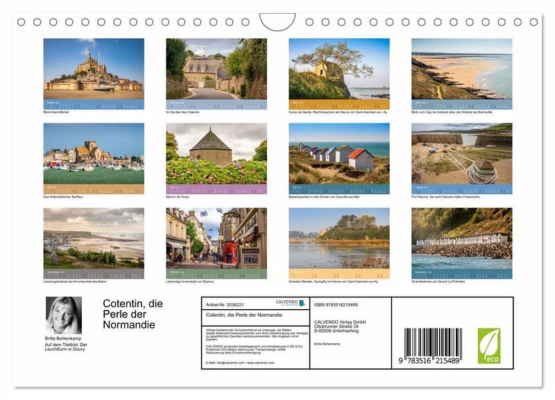 QUALITÄT - Hochwertiger Fotokalender mit 12 wunderschönen Motiven auf lichtbeständigem Bilderdruckpapier, robuste Spiralbindung mit Aufhängebügel.NACHHALTIG - deutliche Abfallreduzierung durch bedarfsgerechte Einzelstückfertigung, umweltfreundliches FSC-zertifiziertes Papier, Produktion in Deutschland, klimabewusste Logistik.PERFEKTES GESCHENK - Kalender für Freunde und Familie, für Kinder und Erwachsene, jung und alt, zu Weihnachten, Geburtstag oder zwischendurch.VIELFALT - Bildkalender in verschiedenen Formaten, z.B. DIN A5, DIN A4, DIN A3 sowie DIN A2. Ob Naturmotiv, Gemälde oder Fotos, ideal für ein persönliches Wohlfühlambiente.Der Nordwesten der Normandie bietet beeindruckende Highlights von Autor(in): Britta Berkenkamp