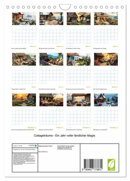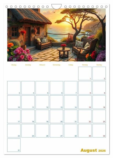 QUALITÄT - Hochwertiger Fotokalender mit 12 wunderschönen Motiven auf lichtbeständigem Bilderdruckpapier, robuste Spiralbindung mit Aufhängebügel.NACHHALTIG - deutliche Abfallreduzierung durch bedarfsgerechte Einzelstückfertigung, umweltfreundliches FSC-zertifiziertes Papier, Produktion in Deutschland, klimabewusste Logistik.PERFEKTES GESCHENK - Kalender für Freunde und Familie, für Kinder und Erwachsene, jung und alt, zu Weihnachten, Geburtstag oder zwischendurch.VIELFALT - Bildkalender in verschiedenen Formaten, z.B. DIN A5, DIN A4, DIN A3 sowie DIN A2. Ob Naturmotiv, Gemälde oder Fotos, ideal für ein persönliches Wohlfühlambiente.Ein liebevoll gestalteter Familienplaner mit zwölf stimmungsvollen Motiven rund ums Cottage, das Meer und ländliche Gartenträume - für ein Jahr voller kleiner Fluchten. von Autor(in): Bianca Mehruns