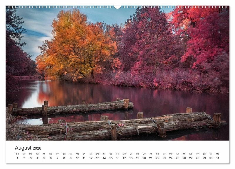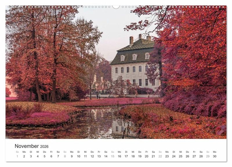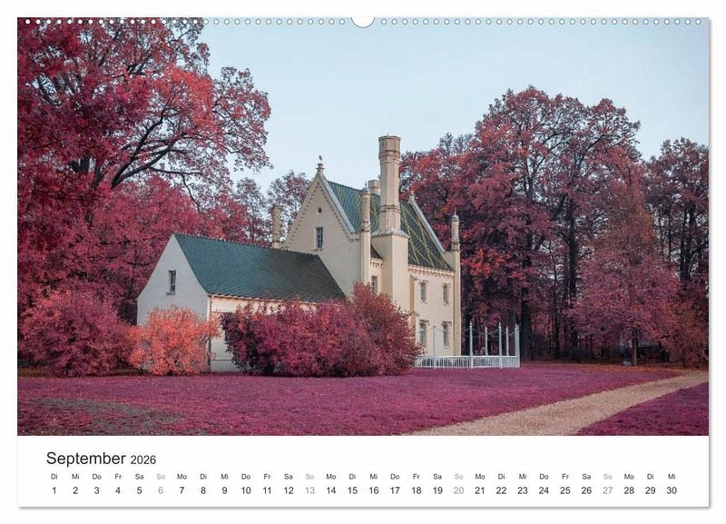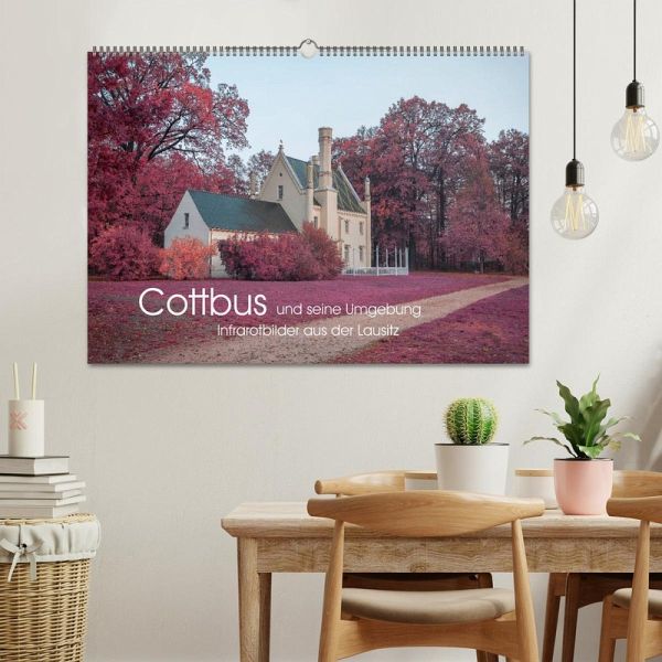Der Kalender präsentiert Ihnen Cottbus und seine Umgebung im Stil des alten Analog-Film Kodak Aerochrome. Er wurde für den Einsatz bei der militärischen Luftaufklärung entwickelt und wird heute nicht mehr hergestellt. Entdecken Sie das prächtige Schloss Branitz in Cottbus, den Findlingspark Nochten oder die Bremsdorfer Mühle im Schlaubetal in digital erzeugten Infrarotaufnahmen.