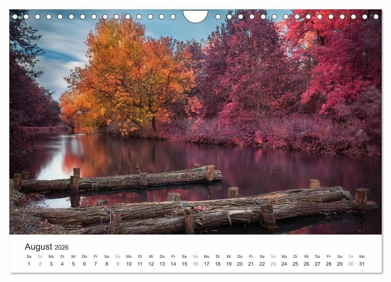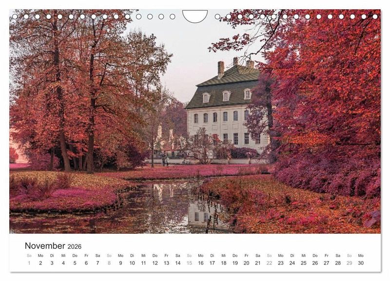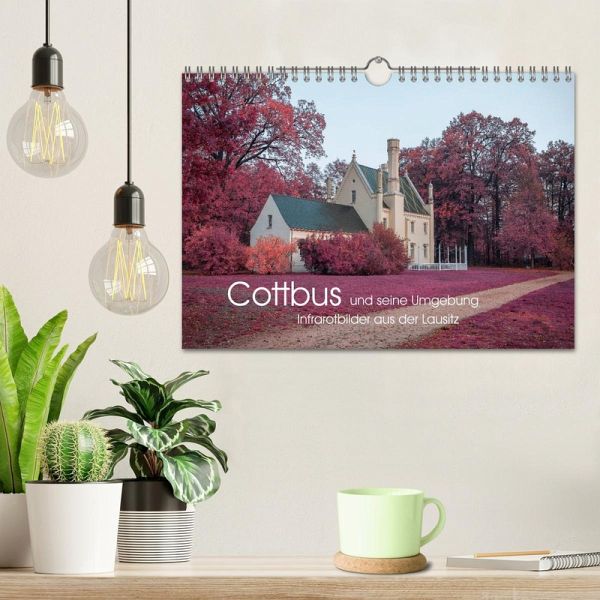 Der Kalender präsentiert Ihnen Cottbus und seine Umgebung im Stil des alten Analog-Film Kodak Aerochrome. Er wurde für den Einsatz bei der militärischen Luftaufklärung entwickelt und wird heute nicht mehr hergestellt. Entdecken Sie das prächtige Schloss Branitz in Cottbus, den Findlingspark Nochten oder die Bremsdorfer Mühle im Schlaubetal in digital erzeugten Infrarotaufnahmen.