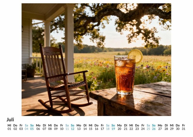 Sehnsucht nach dem einfachen Leben, nach dem Duft von frisch gemähtem Heu und der Stille eines sonnigen Nachmittags auf dem Land? Dieser Kalender fängt genau diese Stimmung ein und bringt sie Monat für Monat an die Wand. Dieser Kalender ist eine gute Wahl für: * Liebhaber des rustikalen Charmes und der Cottagecore Ästhetik. * Stadtbewohner, die sich eine tägliche Dosis ländlicher Ruhe wünschen. * Alle, die ihre Räume mit harmonischen und friedvollen Motiven schmücken möchten. Der Kalender "Country- & Landhaus-Stil" fängt zwölf Momente ein, die eine nostalgische Vision des Landlebens zelebrieren. Verwitterte Holzzäune, an denen Wildblumen ranken, gemütliche Veranden mit Schaukelstühlen und sonnendurchflutete Küchen, in denen frisch gebackenes Brot zu duften scheint. Jede dieser Szenen wurde sorgfältig von Algorithmen erträumt, um eine perfekte, romantische Idylle zu erschaffen, die zum Innehalten einlädt. Mit dem Kauf dieses Kalenders ist zu erwarten: * Zwölf Monatsblätter mit idyllischen Darstellungen des Landlebens. * Ein praktisches Kalendarium, das den Blick auf das Wesentliche lenkt. * Ein Wandkalender, der das ganze Jahr über für eine gelassene Atmosphäre sorgt. Dieser Kalender ist eine Einladung, die kleinen, schönen Dinge des Alltags wiederzuentdecken und sich von der Poesie des einfachen Lebens inspirieren zu lassen. Eine Entdeckungsreise durch zwölf sorgsam komponierte Szenen, die ein Stück ländliche Harmonie nach Hause bringt.