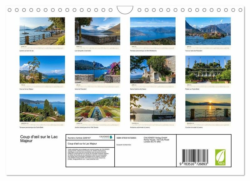 Plongez chaque mois dans la magie du Lac Majeur, où les montagnes majestueuses rencontrent les eaux scintillantes. Chaque page capture un instant unique de cette région italienne d'exception.Laissez-vous transporter par les villages pittoresques, les ports animés et les paysages à couper le souffle, pour un voyage visuel tout au long de l'année. Ce calendrier est une invitation à rêver et à voyager depuis chez vous.Découvrez le Lac Majeur, un chef-d'oeuvre de nature et de culture, mois après mois.