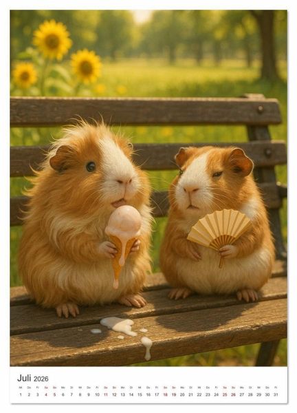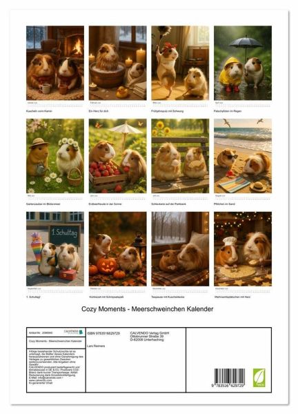Der Kalender begleitet dich Monat für Monat mit liebevoll inszenierten, fotorealistischen Bildern kleiner Fellfreunde in menschlich anmutenden Alltagssituationen. Ob beim Kuscheln auf dem Sofa, beim Erdbeerpflücken im Garten oder beim Badetag im Winter - diese Meerschweinchen verzaubern mit Witz, Wärme und einer extra Portion Gemütlichkeit.