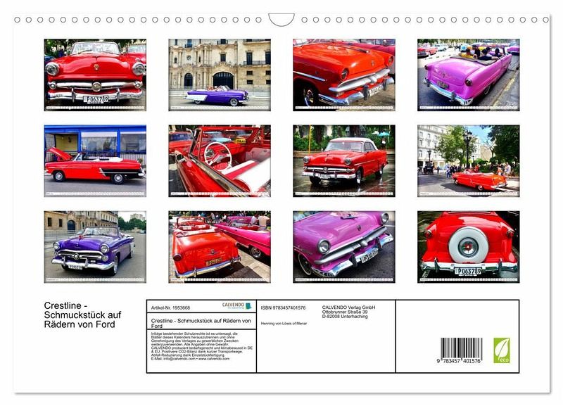 QUALITÄT - Hochwertiger Fotokalender mit 12 wunderschönen Motiven auf lichtbeständigem Bilderdruckpapier, robuste Spiralbindung mit Aufhängebügel.NACHHALTIG - deutliche Abfallreduzierung durch bedarfsgerechte Einzelstückfertigung, umweltfreundliches FSC-zertifiziertes Papier, Produktion in Deutschland, klimabewusste Logistik.PERFEKTES GESCHENK - Kalender für Freunde und Familie, für Kinder und Erwachsene, jung und alt, zu Weihnachten, Geburtstag oder zwischendurch.VIELFALT - Bildkalender in verschiedenen Formaten, z.B. DIN A5, DIN A4, DIN A3 sowie DIN A2. Ob Naturmotiv, Gemälde oder Fotos, ideal für ein persönliches Wohlfühlambiente.Der US-Oldtimer Ford Crestline in Kuba von Autor(in): Henning von Loewis of Menar