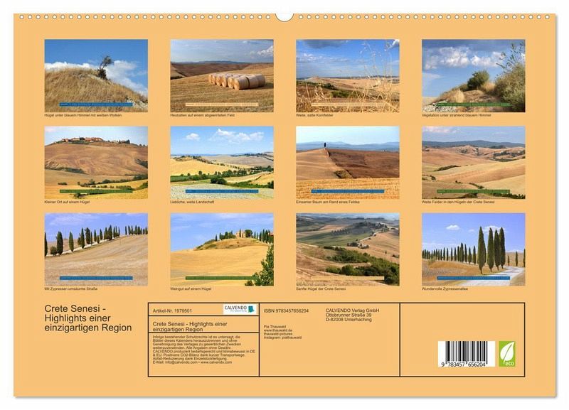 PREMIUM-LINIE - Brillanter Fotokalender mit 12 wunderschönen Motiven, Kunstdruck in Hochglanz in Museumsqualität.QUALITÄT - edle Materialien, stabile Rückwand mit 2 innovativen Einstecktaschen für eine optimale Präsentation an der Wand.NACHHALTIG - deutliche Abfallreduzierung durch bedarfsgerechte Einzelstückfertigung, umweltfreundliches FSC-zertifiziertes Papier, Produktion in Deutschland, klimabewusste Logistik.PERFEKTES GESCHENK - Kalender für Freunde und Familie, für Kinder und Erwachsene, jung und alt, zu Weihnachten, Geburtstag oder zwischendurch.Eine außergewöhnliche Landschaft mit bizarren Lehmhügeln, weiten Feldern und ein markante, durch Erosion geprägte Natur wartet darauf entdeckt zu werden! Krass ist der Gegensatz zum sanften Chianti. von Autor(in): Pia Thauwald