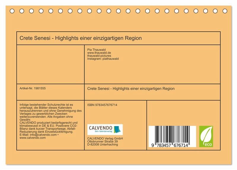 QUALITÄT - Hochwertiger Fotokalender mit 12 wunderschönen Motiven auf lichtbeständigem Bilderdruckpapier, robuste Spiralbindung.NACHHALTIG - deutliche Abfallreduzierung durch bedarfsgerechte Einzelstückfertigung, umweltfreundliches FSC-zertifiziertes Papier, Produktion in Deutschland, klimabewusste Logistik.PERFEKTES GESCHENK - Kalender für Freunde und Familie, für Kinder und Erwachsene, jung und alt, zu Weihnachten, Geburtstag oder zwischendurch.VIELFALT - Bildkalender in verschiedenen Formaten, z.B. DIN A5, DIN A4, DIN A3 sowie DIN A2. Ob Naturmotiv, Gemälde oder Fotos, ideal für ein persönliches Wohlfühlambiente.Eine außergewöhnliche Landschaft mit bizarren Lehmhügeln, weiten Feldern und ein markante, durch Erosion geprägte Natur wartet darauf entdeckt zu werden! Krass ist der Gegensatz zum sanften Chianti. von Autor(in): Pia Thauwald