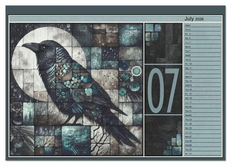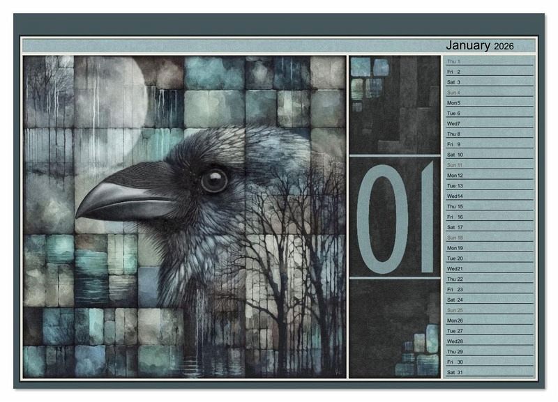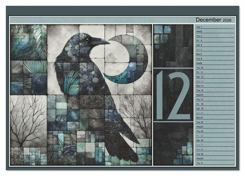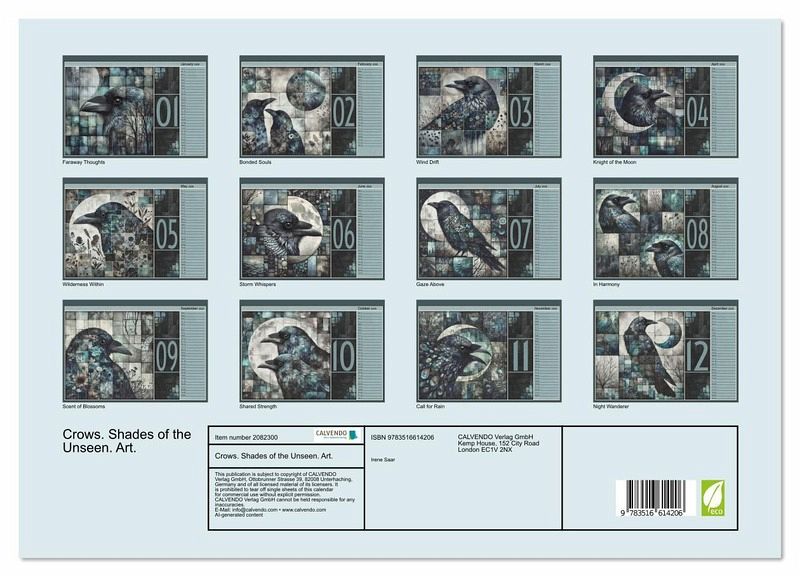 QUALITY - High-quality photo calendar with 12 beautiful images on light-resistant paper, robust spiral binding with hanger.SUSTAINABLE - Significant waste reduction due to print-on-demand production, environmentally friendly FSC-certified paper, produced in the UK, climate-conscious logistical processes.PERFECT GIFT - calendars for friends and family, for children, all ages and all occasions, from Christmas to birthdays and everything in between.LOTS OF CHOICE - Wall calendars in different sizes (DIN A4 and DIN A3), for any topic and personal taste, featuring photography, painting and illustrations.Crows in art, portrayals of soul and expression., author: Irene Saar