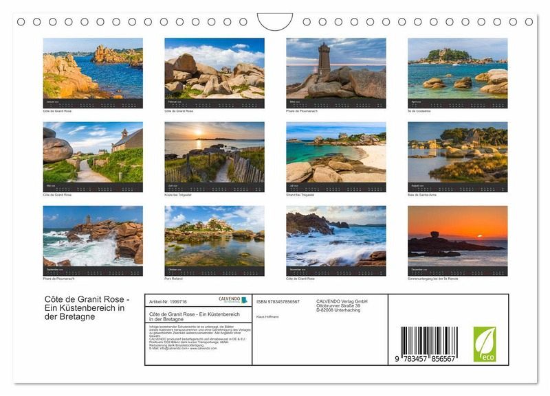 QUALITÄT - Hochwertiger Fotokalender mit 12 wunderschönen Motiven auf lichtbeständigem Bilderdruckpapier, robuste Spiralbindung mit Aufhängebügel.NACHHALTIG - deutliche Abfallreduzierung durch bedarfsgerechte Einzelstückfertigung, umweltfreundliches FSC-zertifiziertes Papier, Produktion in Deutschland, klimabewusste Logistik.PERFEKTES GESCHENK - Kalender für Freunde und Familie, für Kinder und Erwachsene, jung und alt, zu Weihnachten, Geburtstag oder zwischendurch.VIELFALT - Bildkalender in verschiedenen Formaten, z.B. DIN A5, DIN A4, DIN A3 sowie DIN A2. Ob Naturmotiv, Gemälde oder Fotos, ideal für ein persönliches Wohlfühlambiente.Eine faszinierende, wie auch einmalige Küstenlandschaft in der nördlichen Bretagne. von Autor(in): Klaus Hoffmann