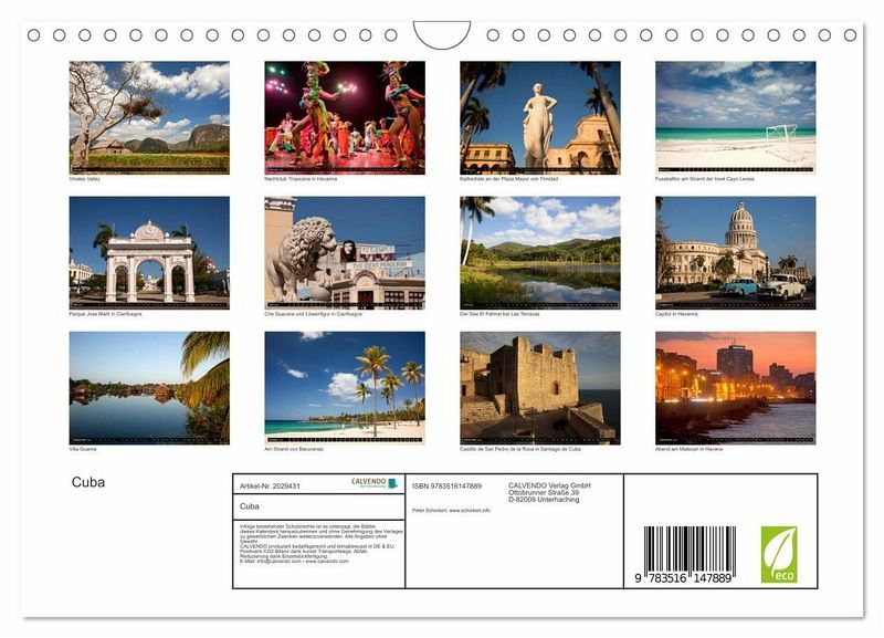 Entdecken Sie eine der schönsten und aussergewöhnlichsten Inseln in der Karibik. Begleiten Sie den Reisefotografen Peter Schickert mit diesem Kalender auf dem Weg von Vinales über Havanna und Trinidad bis Santiago de Cuba.
