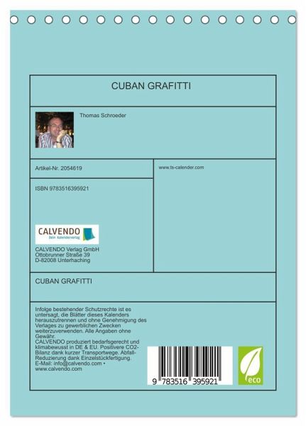 QUALITÄT - Hochwertiger Fotokalender mit 12 wunderschönen Motiven auf lichtbeständigem Bilderdruckpapier, robuste Spiralbindung.NACHHALTIG - deutliche Abfallreduzierung durch bedarfsgerechte Einzelstückfertigung, umweltfreundliches FSC-zertifiziertes Papier, Produktion in Deutschland, klimabewusste Logistik.PERFEKTES GESCHENK - Kalender für Freunde und Familie, für Kinder und Erwachsene, jung und alt, zu Weihnachten, Geburtstag oder zwischendurch.VIELFALT - Bildkalender in verschiedenen Formaten, z.B. DIN A5, DIN A4, DIN A3 sowie DIN A2. Ob Naturmotiv, Gemälde oder Fotos, ideal für ein persönliches Wohlfühlambiente.Kubanische Graffiti Kunst in den Strassen von Havanna von Autor(in): Thomas Schroeder