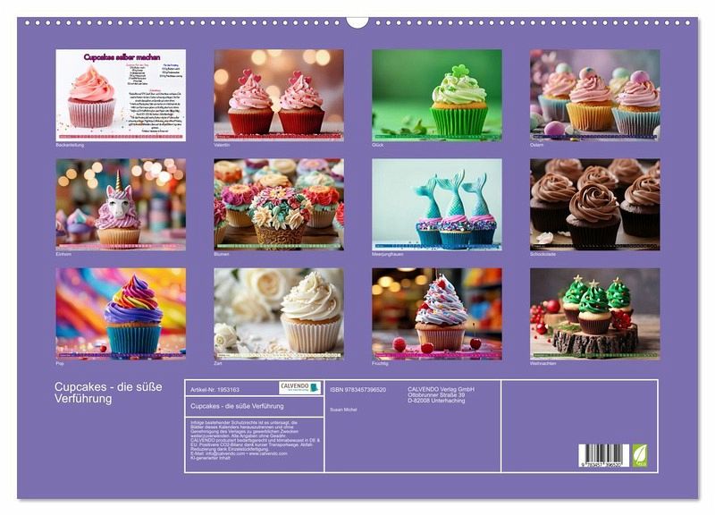 Jeder Monat präsentiert kunstvoll gestaltete Bilder köstlichen Leckereien, die das Wasser im Mund zusammenlaufen lassen. Lass dich von den Farben, Formen und Aromen inspirieren und plane deine Tage mit einem Hauch von süßer Magie. Cupcakes - die süße Verführung, die dein Herz im Sturm erobern wird! Gönn dir den süßen Luxus, den du verdienst. Dieser Kalender wurde mit Unterstützung der KI erstellt.