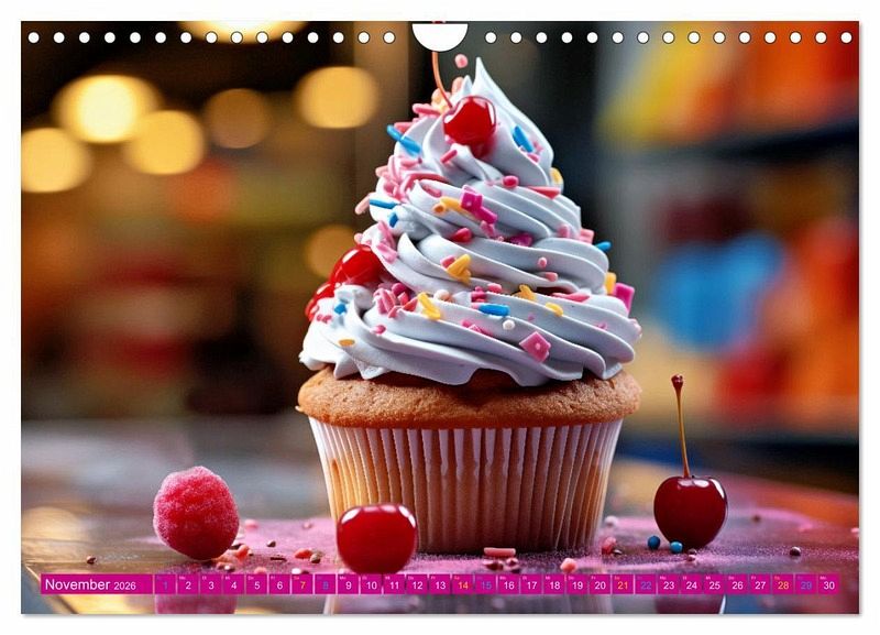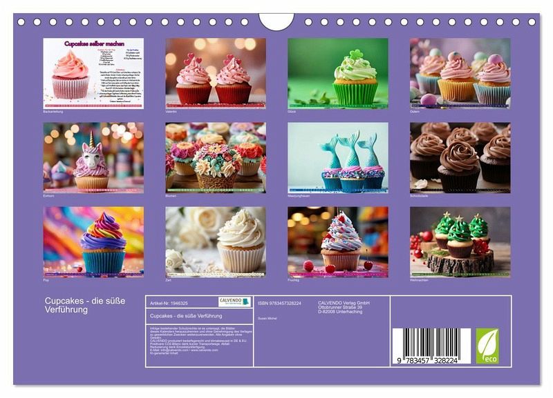 Jeder Monat präsentiert kunstvoll gestaltete Bilder köstlichen Leckereien, die das Wasser im Mund zusammenlaufen lassen. Lass dich von den Farben, Formen und Aromen inspirieren und plane deine Tage mit einem Hauch von süßer Magie. Cupcakes - die süße Verführung, die dein Herz im Sturm erobern wird! Gönn dir den süßen Luxus, den du verdienst. Dieser Kalender wurde mit Unterstützung der KI erstellt.