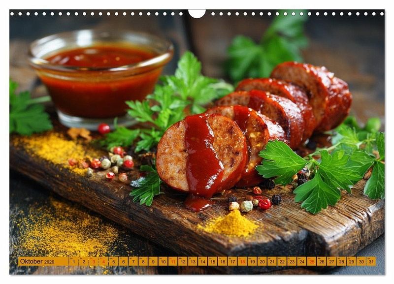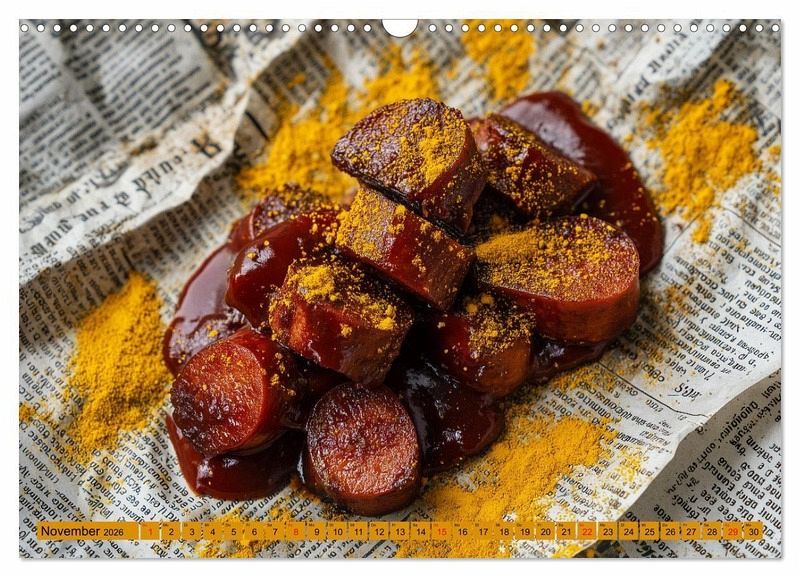 Currywurst - das Kultgericht für Fleischliebhaber im Deutschlandkalender. Dieser Wurstkalender zeigt Monat für Monat die Vielfalt von Berliner Currywurst, Bratwurst und Bockwurst mit würziger Sauce und Curry. Ein ideales Currywurst-Geschenk für echte Genießer und zugleich ein originelles Geschenk für Fleischliebhaber, die es deftig mögen. Ob als Küchenkalender in der eigenen Wohnung, als Essen Kalender für Genießer, als humorvoller Familienkalender in der Küche oder als witziger Deutschlandkalender in der Imbissbude - dieser mit KI-generierte Hingucker bringt Appetit und gute Laune in den Alltag. Von klassisch bis kreativ wird die Wurst in Szene gesetzt und macht Lust auf mehr. Perfekt für Fans von traditionellem Fleisch und alle, die eine Extrawurst lieben.