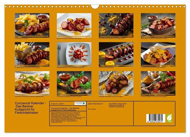 QUALITÄT - Hochwertiger Fotokalender mit 12 wunderschönen Motiven auf lichtbeständigem Bilderdruckpapier, robuste Spiralbindung mit Aufhängebügel.NACHHALTIG - deutliche Abfallreduzierung durch bedarfsgerechte Einzelstückfertigung, umweltfreundliches FSC-zertifiziertes Papier, Produktion in Deutschland, klimabewusste Logistik.PERFEKTES GESCHENK - Kalender für Freunde und Familie, für Kinder und Erwachsene, jung und alt, zu Weihnachten, Geburtstag oder zwischendurch.VIELFALT - Bildkalender in verschiedenen Formaten, z.B. DIN A5, DIN A4, DIN A3 sowie DIN A2. Ob Naturmotiv, Gemälde oder Fotos, ideal für ein persönliches Wohlfühlambiente.Currywurst in voller Vielfalt: Berliner Currywurst, Bratwurst und Bockwurst mit Curry und Sauce. Origineller Wurstkalender als Geschenk für Fleischliebhaber - der Küchenkalender für Deutschland. von Autor(in): Michael Bihlmayer