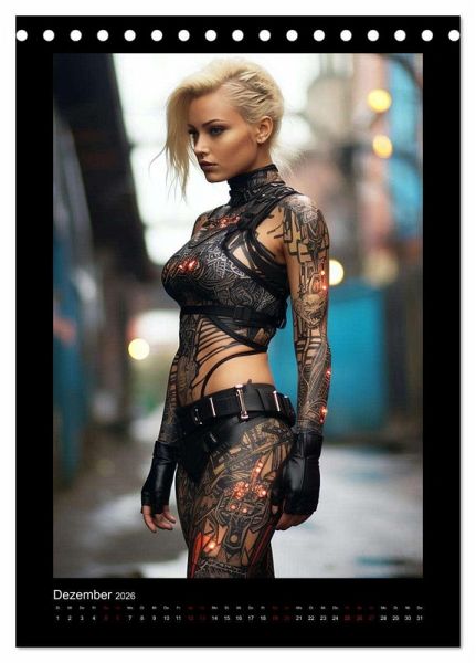 Cyberworld trifft auf KI. Außergewöhnliche Darstellungen junger Frauen in modernen Lederanzügen. Tattoos die nicht von dieser Welt stammen. Lassen Sie sich faszinieren und inspirieren durch diesen wunderschönen Kalender. 12 verschiedene Motiven mit modernen Design. Erstellt rein durch KI.