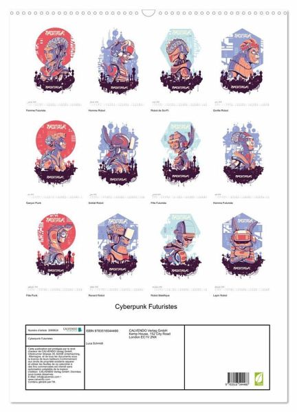 Explorez l'univers cyberpunk à travers nos 12 personnages fictifs et futuristes: des robots, des humains androides et des animaux cyberpunk évoluant dans un monde technologiquement avancé et mystérieux. Chaque mois vous dévoile le portrait de l'un de ces personnages venus du futur dans un cadre urbain futuriste. Offrez une touche de modernité à votre maison, à votre bureau ou faites un cadeau original à vos proches ou collèges en achetant ce calendrier Cyberpunk et laissez-vous envoûter par ce voyage vers le futur. Le calendrier a été créé à l'aide de l'IA.