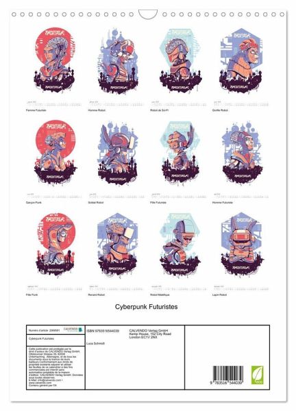 Explorez l'univers cyberpunk à travers nos 12 personnages fictifs et futuristes: des robots, des humains androides et des animaux cyberpunk évoluant dans un monde technologiquement avancé et mystérieux. Chaque mois vous dévoile le portrait de l'un de ces personnages venus du futur dans un cadre urbain futuriste. Offrez une touche de modernité à votre maison, à votre bureau ou faites un cadeau original à vos proches ou collèges en achetant ce calendrier Cyberpunk et laissez-vous envoûter par ce voyage vers le futur. Le calendrier a été créé à l'aide de l'IA.