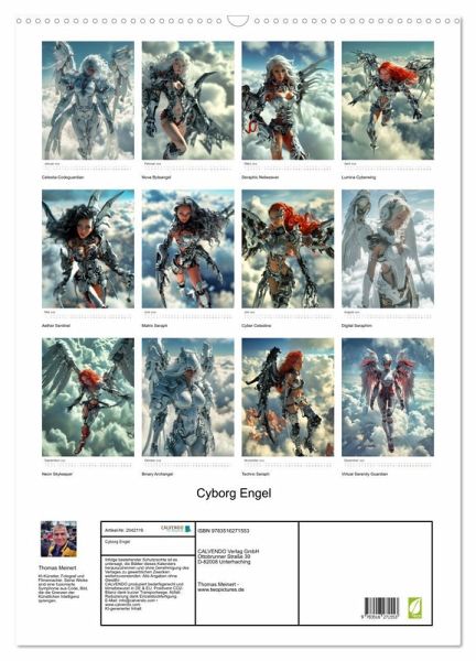 ung und alt, zu Weihnachten, Geburtstag oder zwischendurch.VIELFALT - Bildkalender in verschiedenen Formaten, z.B. DIN A5, DIN A4, DIN A3 sowie DIN A2. Ob Naturmotiv, Gemälde oder Fotos, ideal für ein persönliches Wohlfühlambiente.Wunderschöne Engel halb Mensch halb Maschine. von Autor(in): Thomas Meinert