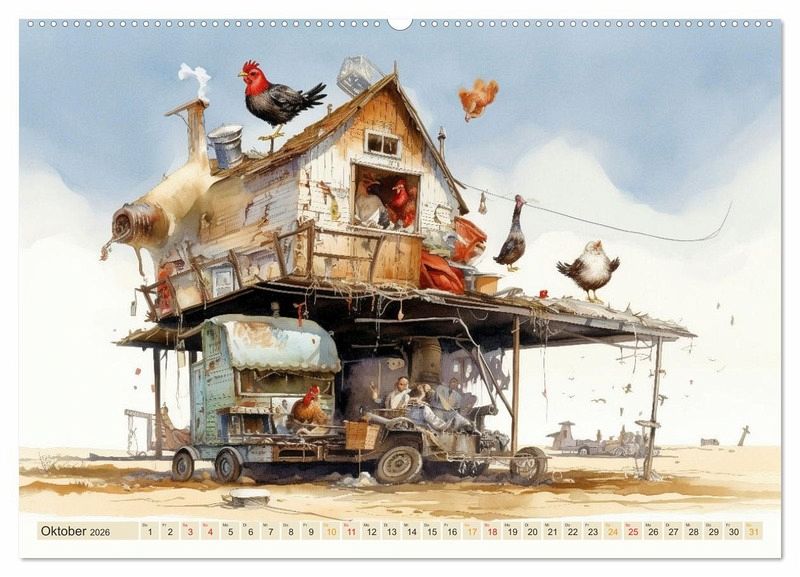 Bauernhof - bei diesem Wort denken wir alle an Kühe melken, Hühner füttern, Heu-Ernte und Trecker fahren. Wie wäre es mit einem leicht verrückten und lustigen ausgelassenen Hofleben? Der Fotokünstler Peter Roder hat hierzu originelle KI-Bilder gestaltet. Ein humorvoller Kalender , der schon beim Ansehen der Bilder gute Laune macht.