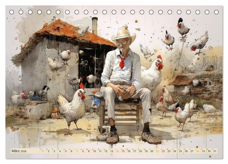 Bauernhof - bei diesem Wort denken wir alle an Kühe melken, Hühner füttern, Heu-Ernte und Trecker fahren. Wie wäre es mit einem leicht verrückten und lustigen ausgelassenen Hofleben? Der Fotokünstler Peter Roder hat hierzu originelle KI-Bilder gestaltet. Ein humorvoller Kalender , der schon beim Ansehen der Bilder gute Laune macht.