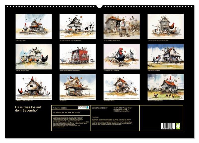 Bauernhof - bei diesem Wort denken wir alle an Kühe melken, Hühner füttern, Heu-Ernte und Trecker fahren. Wie wäre es mit einem leicht verrückten und lustigen ausgelassenen Hofleben? Der Fotokünstler Peter Roder hat hierzu originelle KI-Bilder gestaltet. Ein humorvoller Kalender , der schon beim Ansehen der Bilder gute Laune macht.