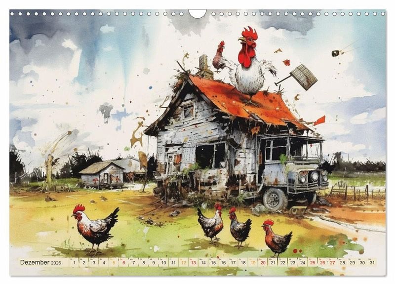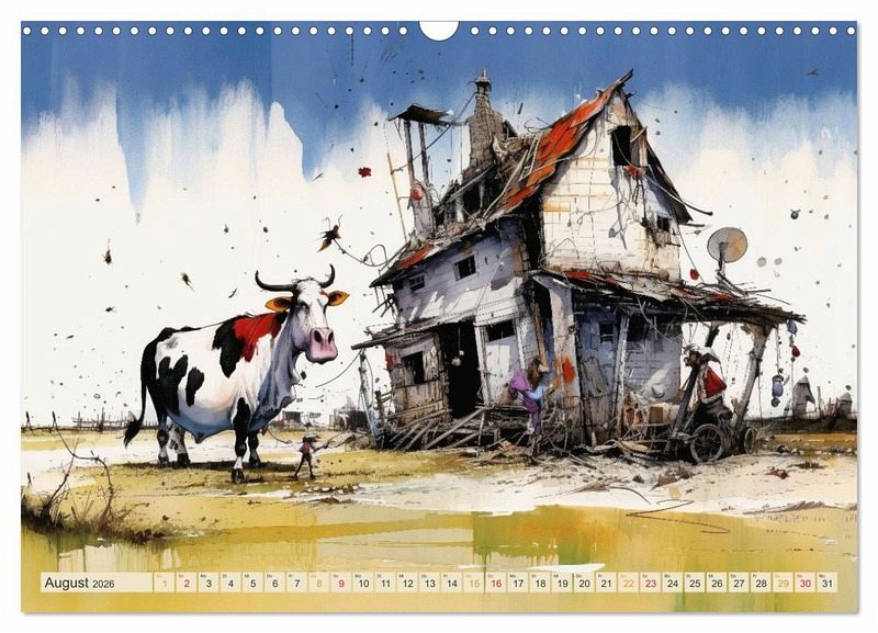 Bauernhof - bei diesem Wort denken wir alle an Kühe melken, Hühner füttern, Heu-Ernte und Trecker fahren. Wie wäre es mit einem leicht verrückten und lustigen ausgelassenen Hofleben? Der Fotokünstler Peter Roder hat hierzu originelle KI-Bilder gestaltet. Ein humorvoller Kalender , der schon beim Ansehen der Bilder gute Laune macht.