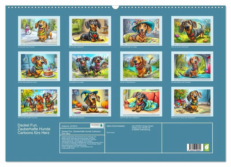 Dieser Dackel Kalender steckt voller Charme und Witz auf kurzen Beinchen. Jeder Monat wurde mit der Hilfe von KI erstellt und zeigt den liebenswerten Dackel in einer humorvollen Alltagsszene - mal als lustiger Wanderer, mal beim Campen. Die bunten Illustrationen bringen Groß und Klein zum Schmunzeln. Ein Muss für alle Dackel-Fans und Freunde des Hundehumors!