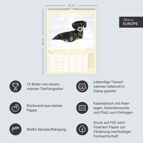 - Große Liebe für kleine Hunde: Die zauberhaften Dackel-Fotos in diesem Monatskalender bringen jedes Herz zum Schmelzen- Ob Lang-, Kurz- oder Rauhaardackel, in diesem Foto-Kalender für Hundefans haben sie alle ihren großen Auftritt- Der Wandkalender im Format 30 x 39 cm präsentiert die liebenswerten Sturköpfe von ihrer besten Seite- Jeden Monat Dackelliebe pur: 12 Porträts der kleinen Jagdhunde mit ihrem ganz besonderen Charme in einem Fotokalender - Noch mehr Tierkalender in höchster Qualität finden Sie bei Weingarten im Athesia Kalenderverlag