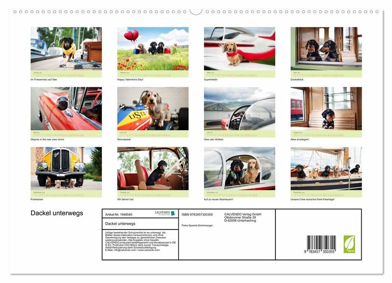 PREMIUM-LINIE - Brillanter Fotokalender mit 12 wunderschönen Motiven, Kunstdruck in Hochglanz in Museumsqualität.QUALITÄT - edle Materialien, stabile Rückwand mit 2 innovativen Einstecktaschen für eine optimale Präsentation an der Wand.NACHHALTIG - deutliche Abfallreduzierung durch bedarfsgerechte Einzelstückfertigung, umweltfreundliches FSC-zertifiziertes Papier, Produktion in Deutschland, klimabewusste Logistik.PERFEKTES GESCHENK - Kalender für Freunde und Familie, für Kinder und Erwachsene, jung und alt, zu Weihnachten, Geburtstag oder zwischendurch.Dackel auf Reisen zu Lande, zu Wasser und in der Luft! von Autor(in): Ulrike Köser