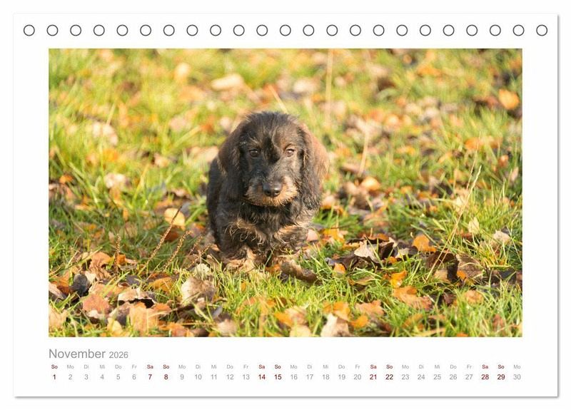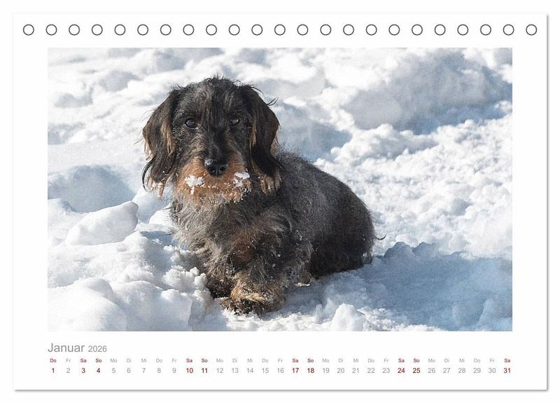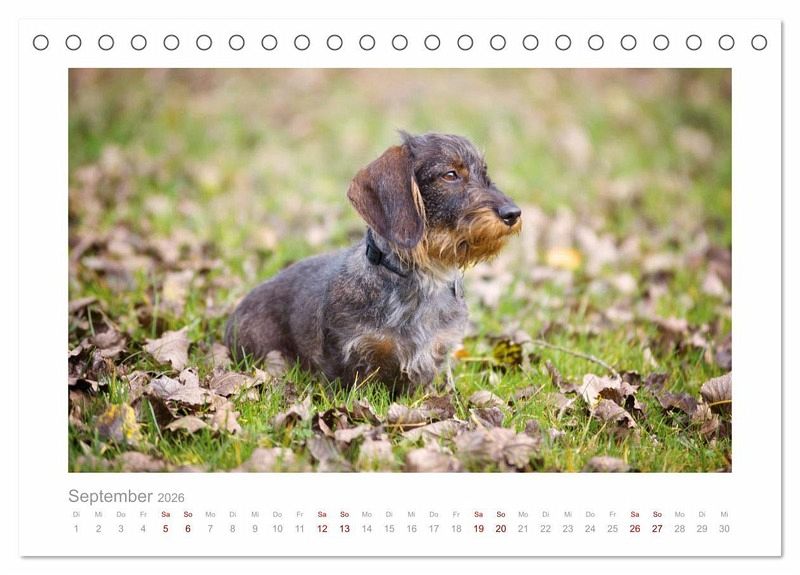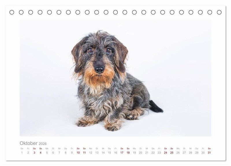 Der Rauhaardackel bezaubert mit seinem unwiderstehlichen Blick, wie es kaum eine andere Hunderasse vermag. Er ist ein treuer Wegbegleiter, der gerne seinen eigenen Kopf durchsetzt und ist sehr gelehrig. Lassen Sie sich Monat für Monat durch seinen Blick verzaubern.
